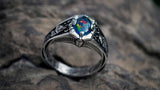 This ring can be used as an engagement ring and is resplendent with a single boulder opal gemstone in the centerpiece. By staying close to the style of jewelry worn by the ancient Egyptians and yet retaining many of the detailing and precision that all BlackTree Lab rings are known for, we have been able to produce a signature piece that you would be proud to wear.