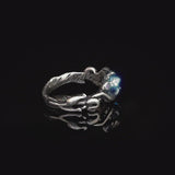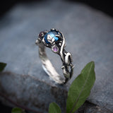 “Avery” - Nature-Inspired Silver Ring with Swiss Blue Topaz and Floral Design