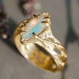 The "Vivienne" ring is a masterpiece, crafted with love and attention to detail from Solid Gold, cradling a radiant Fire Opal in its heart. This Gold Fire Opal engagement ring isn’t just a piece of jewelry; it’s a spiritual connection to the earth’s beauty and energy. The harmony of Solid Gold and Natural Opal creates a magical allure, drawing those who seek a deeper connection to the natural world. Its floral design whispers of ancient forests and elven queens, infusing each moment with nature’s magic.