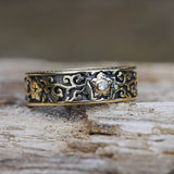 Unisex 14K Gold Floral Diamond Wedding Band with Antique Black Rhodium Finish