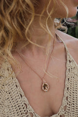14K Rose Gold Dendritic Agate Pendant "Home"