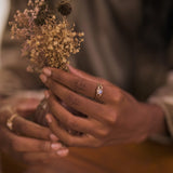 The beauty invites you to dive into the moonlit journey, where your Inner Goddess of Femininity is a strong and desired woman, and every day is full of magic and self-love. Discover what stays behind mesmerizing craftsmanship of this Solid Gold ring.