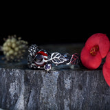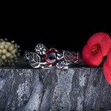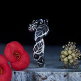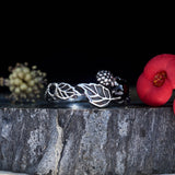 Bring sweetness to your mood together with delightful fruit notes of the "Raspberry" ring. Taste the harvest of the most desirable season of the year by wearing this special summer-inspired beauty. Red Garnet and Purple Amethyst symbolize the most delicious berries, which are adorned by leaves and flowers accurately made out of Sterling Silver.