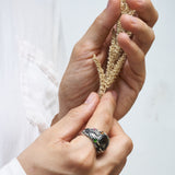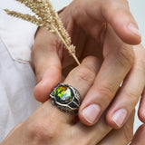 This symbolic ring speaks to those on a spiritual path, drawn to legends and timeless meanings. Designed as a fantasy ring for men and women, it brings together elemental textures and healing energy. A lasting piece of artisan jewelry, made with heirloom-level care and presence.