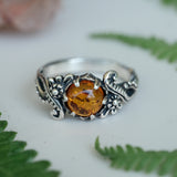Inspired by the lush jungles of Bali and the intricate beauty of local nature, this Sterling Silver Amber ring is a true testament to our artistry and pride. The design evokes a sweet escape to Bali, immersing you in the vibrant culture and the abundant flora of this tropical paradise.