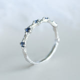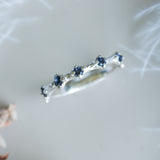 Enter a world of royalty with this enchanting Blue Sapphire Engagement Ring, adorned with five captivating blue sapphires. Revered as the gemstone of kings and queens throughout history, blue sapphires embody loyalty, wisdom and the spirit of nobility. Their deep azure hues shimmer like the midnight sky, each stone nestled in a sea of lustrous Sterling Silver or Solid Gold - available in your choice of White, Rose, or Yellow Gold - that glistens with regal allure.