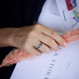 This ring speaks to those drawn to the strength of nature. Its asymmetrical design, natural gemstones, and handcrafted artistry make it ideal for a non-traditional engagement ring, a garden-inspired promise ring, or a unique gift filled with meaning.