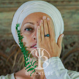 The ring is handcrafted from solid 925 Sterling Silver with an oxidized finish, accentuating each delicate line and ornamental curve. Every detail reflects the precision of true craftsmanship and the character of natural materials.