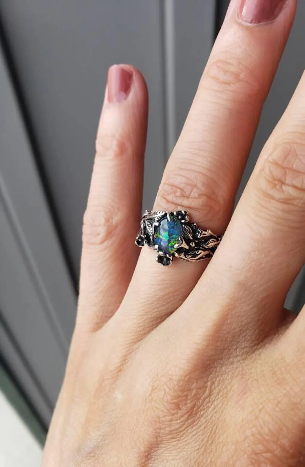 This handmade opal ring is a timeless choice for those who admire the fusion of artistry, authenticity, and color. A sterling silver statement ring that holds the warmth of fire and the calm of stone.