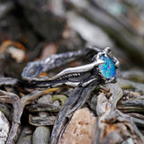 Wearing the right jewelry piece to any occasion is one sure way to stand out. “Eden” is an Boulder Fire Opal engagement ring that brings together the power of style and spirituality. Handcrafted and made out of 925 Sterling Silver, it is a perfect choice for an engagement ring, carrying a vibrant high quality boulder opal triplet in its center.