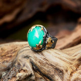 Please allow around 15 business days for producing this ring from the date of your order. Due to the handmade work and natural origin of the stones, each piece is unique and may slightly vary.