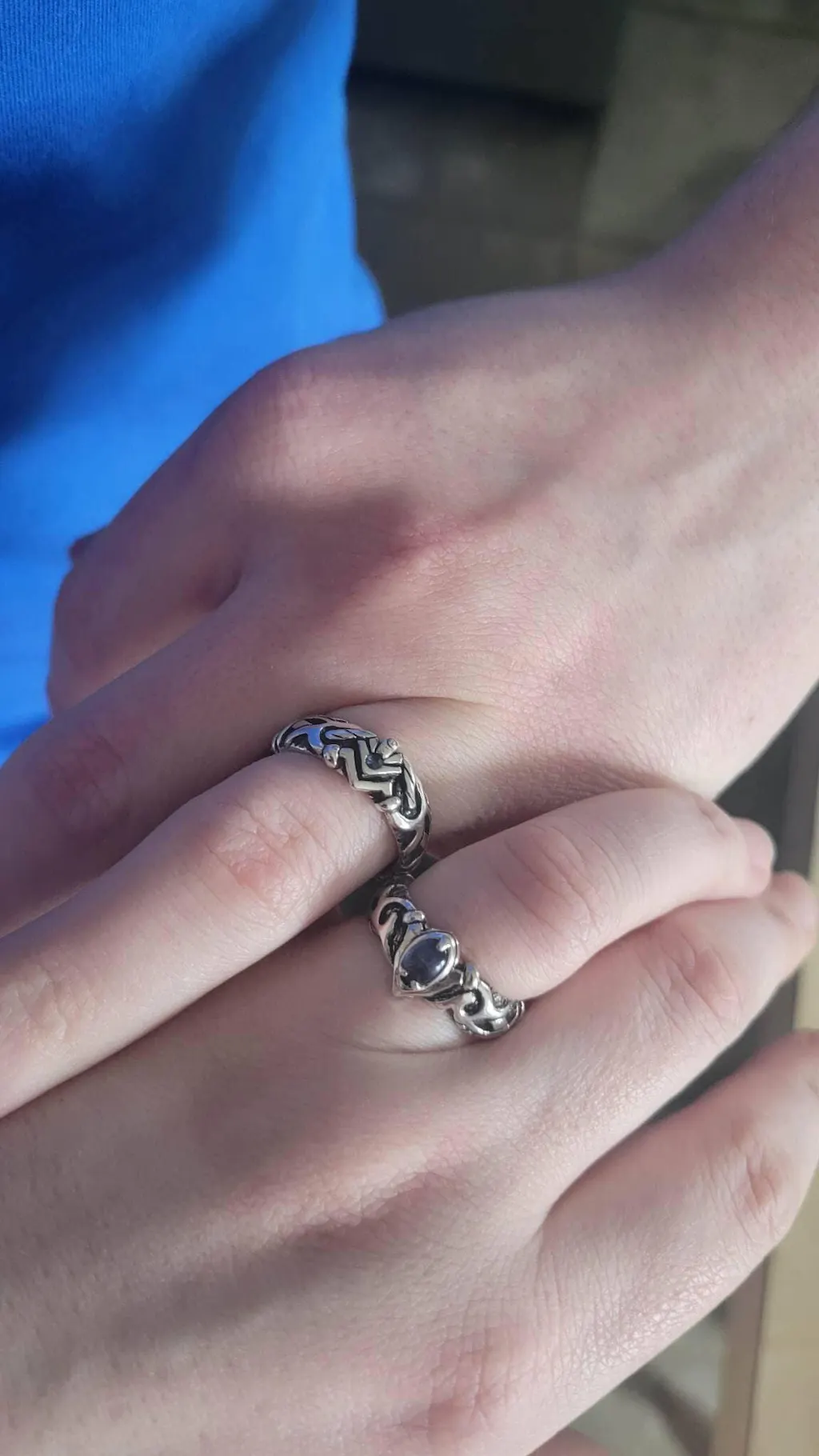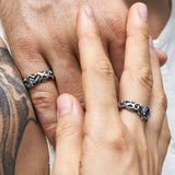 The "Alaya" couple rings set is exclusively made Sterling Silver ring set designed for those who appreciate tribal ornaments and high quality of handmade work. The master was truly inspired by the Celtic culture, and he represented it in a new vision.