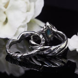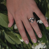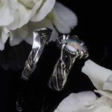 Vivienne set is a sterling silver wedding ring with Fire Opal and the matching band set. It's a great alternative to the traditional wedding ring: this engagement ring set will help to show your special someone how much you appreciate her individuality and creativity. Hand-picked Fire Opal gemstone is the ideal for all lovers who want to be protected from negative energy. These statement rings can be worn together, or separately, making it perfect for everyday wear.