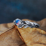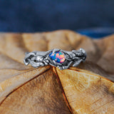 The “Liane” Fire Opal Ring captures the untamed beauty of nature with its enchanting blend of sterling silver foliage and a glowing Boulder Fire Opal. Inspired by the quiet elegance of forest vines and leaves, this ring wraps gently around your finger with twig-like textures and finely sculpted details.