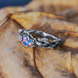 “Liane” - Fire Opal Ring with Sterling Silver Leaves and Twigs