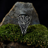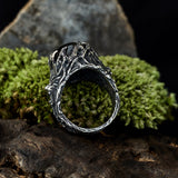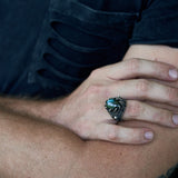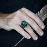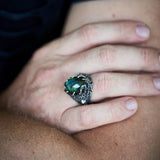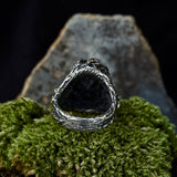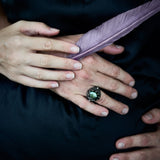 "Wolf" is a men's statement ring that shows the most powerful totem animal engraved on the sides - the wolf. Every design element in the ring is absolutely handmade. Oxidized finishing on Sterling Silver is used to underline all exquisite details in the ring. The beauty and charming colors of Genuine Labradorite placed in the center of the ring will shine for you for many years.