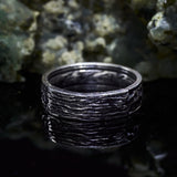 This hammered ring is a sure hit for those who want their rings to stand out. “Lilian” wedding band has an unusual texture that is beautiful when contrasted with its smooth silver: like water washing against rocks. This sterling silver ring, with a blackened finish, is designed to fit comfortably and will look good with your formal and casual outfits. Surprise your significant other with this gorgeous wide wedding band for a truly special engagement or anniversary.