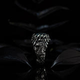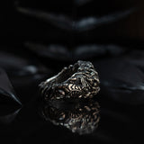 Made out of Sterling Silver 925, this statement ring amazes with high attention to details and exquisite work. Oxidized finishing used on Sterling Silver makes the dragon symbol and all design elements more realistic.