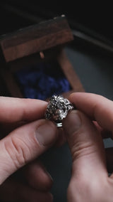 Embrace the profound beauty of life and death through our exquisite antique ring, featuring a Mexican skull design in sterling silver. This remarkable “Sugar Skull” ring pays tribute to the beloved Day of the Dead tradition, celebrating the memory of departed souls and the enduring connection between life and death. Meticulously crafted, this unisex ring serves as a stunning symbol to honor your cherished ones.