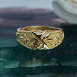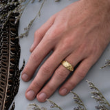 Experience the profound symbolism of our "Wolf" men's wedding band, a standout piece in our collection. Crafted with precision and passion, this ring features the majestic wolf engraved on its sides, symbolizing loyalty, instinct, and strength. Neo-Celtic ornaments add an exquisite touch to the design, now showcased in noble solid gold. Embrace the inherent qualities of the wolf totem animal while indulging in the superior craftsmanship of handmade jewelry.