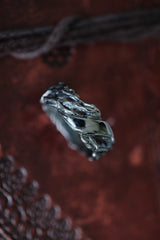 The Vivienne men’s wedding band is crafted from solid 925 sterling silver and finished with a deep black rhodium coating for a bold, understated look. Its branch-inspired design carries the raw energy of nature - a reminder of roots, resilience, and connection.