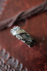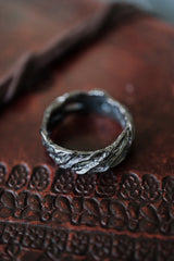 With its clean lines and organic texture, this ring feels powerful yet minimal, making it perfect as a men’s wedding band, anniversary ring, or promise ring.