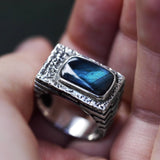 Mens Sterling Silver Labradorite Ring "Neo"
