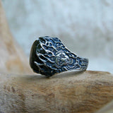 The "Wise Lion" ring - is a great example of a men’s ring made out of 925 Sterling Silver and handcrafted with high attention to details. Our master also used oxidization technique, so the silver looks blackened and the jewellery acquires antique style.