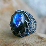 Men's Sterling Silver Labradorite Ring "Wise Lion"
