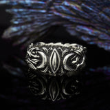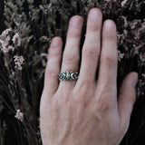 This mens ring made of Blackened Sterling Silver 925 is a very welcome addition to our jewelry collection. "Soma" is a statement ring that matches the bohemian style of our bestseller, "Soma" Ring for women. It's truly masculine, but also very graceful with triple moon symbols and floral motifs. It's the perfect gift for your special men - like an anniversary ring or no occasion at all!