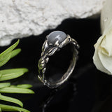 The “Alma” engagement ring is a stunning example of boho craftsmanship and nature-inspired design. Handmade from 925 sterling silver with an oxidized antique finish, this ring features delicate floral motifs that wrap gracefully around a hand-picked natural moonstone in an oval shape (6x8 mm). Perfect as a moonstone engagement ring or a meaningful gift for women, especially those born in June, as moonstone is their birthstone. The oxidized sterling silver enhances the vintage feel, highlighting every intricate detail. A timeless piece for those who appreciate bohemian style, vintage jewelry and nature-inspired rings.