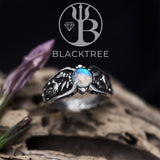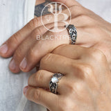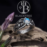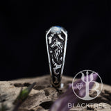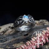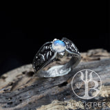 This women's Moonstone ring with Wolf ideally matches the Women's Wedding band "Wolf".