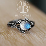 Luna - Rainbow Moonstone Floral Moon Engagement Ring