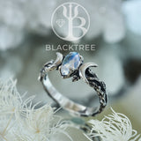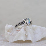 The "Soma" ring is handmade out of Sterling Silver, the most recommended noble metal for women to give more feminine energy support. A Rainbow Moonstone placed in the center of the Full Moon portrays all the superpowers every woman possesses.
