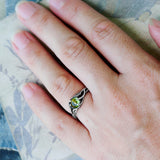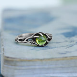 The rich green of the August birthstone shines brightly against the antique silver tones, evoking fresh growth and quiet strength. This is a ring that speaks to the soul - ideal as a Peridot engagement ring, a botanical promise ring, or a timeless gift for her.