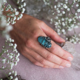 Sea-themed ring “Oceania” with large aquamarine