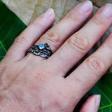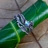 Moonstone Bridal Ring Set in Sterling Silver - Stackable Nature-Inspired Wedding Rings