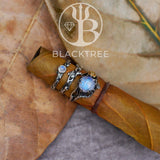 Moonstone Ring Set - Gold Rose & Twig Stacking Wedding Rings