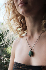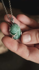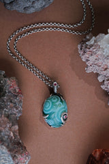 The sterling silver frame is carved to follow the rhythms and curves of the stone’s own pattern. The front and back are different, each with its own texture and its own story - which means the pendant can be worn on either side.