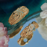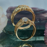 Solid Gold Wedding Ring Set with Moonstone "Wolves"