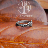“Mio” is a delicately beautiful sterling silver ring shaped like a branch with outlying leaves and buds. It can be worn with other rings as a unique ring set or even as part of a wedding band set.