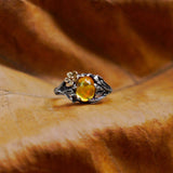 Beautiful craftsmanship and incredible finishing are few of the words that characterize the style of “Firefly”, an engagement ring made by hand from 925 sterling silver and carrying a single yet vibrant Ethiopian Fire Opal of high quality in its center. “Firefly” was designed in the style of jewelry that all our pieces at BlackTree carry – excellence – and shows a Mother Nature inspired theme with beautiful twigs and flowers arranged around a symbolic sun.
