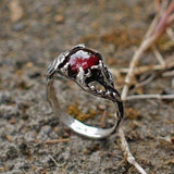 This ring is a bold yet graceful statement - perfect for an engagement, wedding or a meaningful anniversary gift. With its nature-inspired design and rich garnet hue, it tells a story of passion, grounding and enduring love.