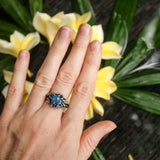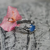 A quiet ode to stillness, the “Indian Summer” ring captures the final warmth of the season in a detailed Sterling Silver design. Handcrafted with care, this nature-inspired piece features a vivid natural Kyanite gemstone embraced by organic twigs, leaves, and a tiny snail - a symbol of slowing down and staying grounded.