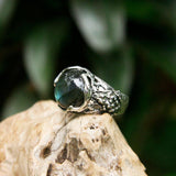 That’s why we designed “Amphibia”, a beautiful and outstanding silver labradorite ring for all who identify with the frog as their totem or spirit animal. Handcrafted from the finest grade of silver, and showing real quality in the manner of the finishing, this ring introduces the frog to many people.
