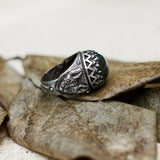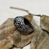 This 925 Sterling silver Ring is adorned with a natural labradorite in its center. The labradorite gemstone is known for awakening the mystical and psychic powers in the person who wears it. Due to the oxidized finishing, the silver looks blackened and gives antique look to the ring.
