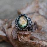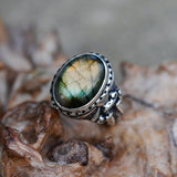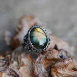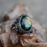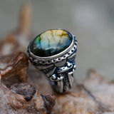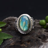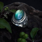 At its center lies a high-quality natural Labradorite, glowing with blue and green fire. Known for its mystical light and transformative energy, Labradorite is believed to awaken inner vision and protect the aura.