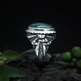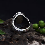 This unisex ring is crafted from 925 sterling silver, oxidized to create depth and an antique finish. The side engravings are inspired by Tibetan thangka art - traditional Buddhist paintings. Here, you’ll find motifs of clouds and light, symbolizing spiritual awakening, clarity, and intelligence.