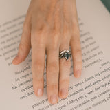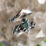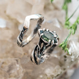 For those who find their spirit intertwined with nature, the Vivienne Moss Agate Engagement Ring Set is a spiritual treasure crafted just for you. This enchanting set, handcrafted from Sterling Silver 925 with an oxidized finish, features a mesmerizing Moss Agate as its centerpiece. The band, adorned with intricately intertwined branches, echoes the beauty and serenity of the natural world.