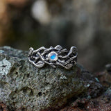 “Sienna” is a rainbow moonstone ring handcrafted with attention to details and made from oxidized 925 Sterling Silver. As it is our custom style at BlackTreeLab, we use only the finest grade of Natural Rainbow Moonstone for the “Sienna” ring, making sure you enjoy the many benefits that wearing a moonstone offers, such as strengthening the inner intuition of the sixth sense and promoting love and fertility in new weds, as well as removing negativity and ill will from you and balancing hormones in the body.
